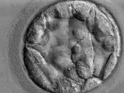 Durch diese Polarisation der Zellen wird durch die äußeren Zellen ein aktiver Flüssigkeitsstrom ins Innere der Morula ausgelöst. Infolgedessen bildet sich die Blastozyste, das Volumen in ihrem Inneren steigt an und sie tritt aus der Zona pellucida (Eihülle) aus. Unterstützt wird dieser Vorgang durch eine enzymatische Zersetzung der Zona pellucida. Die inneren Zellen der Morula – der Embryoblast bzw. die innere Zellmasse (IZM) – bleiben dabei nur an einer Seite erhalten (embryonaler Pol), während sich aus den umhüllenden Zellen der Trophoblast bildet – eine schützende Hülle, aus der schließlich Plazenta und Eihäute entstehen werden. Im Stadium der Blastozyste erfolgt bei Säugetieren einschließlich des Menschen die Einnistung (Nidation).