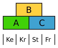 A und C unterdrücken sich gegenseitig, sodass es zu keiner Überschneidung kommt. Bei Abwesenheit des einen wird die andere Klasse in der gesamten Blüte ausgebildet. Das ABC-Modell wurde 1991 von E. Coen und E. Meyerowitz[14] aufgestellt, wurde inzwischen vielfach bestätigt und erweitert.
