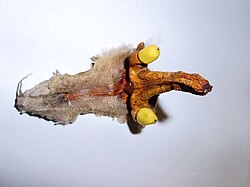 Beispiel für einen männlichen Blütenstand eines Gymnospermen (hier Waldkiefer)