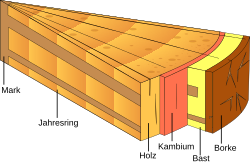 Funktionell ist nur der innerste, beim Kambium befindliche Teil des sekundären Phloems.