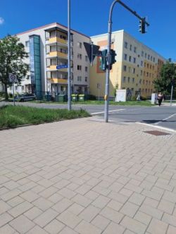 Vom Ernst-Haeckel-Platz ausgehende Straße zum Westbahnhof.