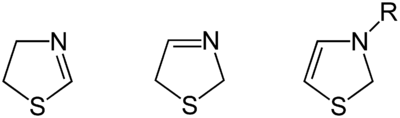 - 3-Thiazoline (alternativer Name: 2,5-Dihydrothiazole) enthalten eine C=N-Doppelbindung zwischen dem Kohlenstoffatom 4 und dem Stickstoffatom