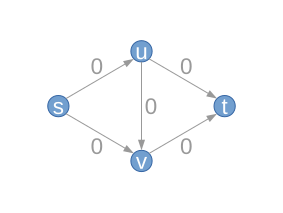 Zur Initialisierung kann ein beliebiger Fluss verwendet werden (auch der Nullfluss, der jeder Kante