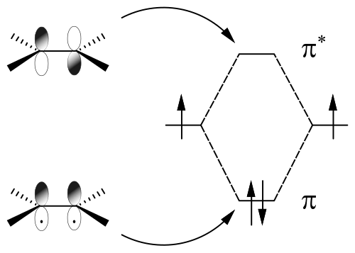 Die Bindungen zwischen den Kohlenstoffatomen in Ethen sind jedoch nicht gleich stark. Die Bindungsenergie der Kohlenstoff-Kohlenstoff-Doppelbindung beträgt 611 Kilojoule pro Mol und damit weniger als das Doppelte der Kohlenstoff-Kohlenstoff-Einfachbindung im Ethan, die etwa 347 Kilojoule pro Mol beträgt.[62][63] Allgemein ist Ethen aufgrund der hohen Elektronendichte zwischen den beiden Kohlenstoff-Atomen wesentlich reaktiver als zum Beispiel das einfach gebundene Ethan.
