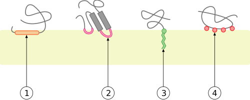 Schematische Darstellung der verschiedenen Arten von membranständigen Proteinen: