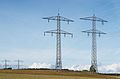 Leitung des Schluchseewerks mit Erdseilen auf den Enden der oberen Traverse -